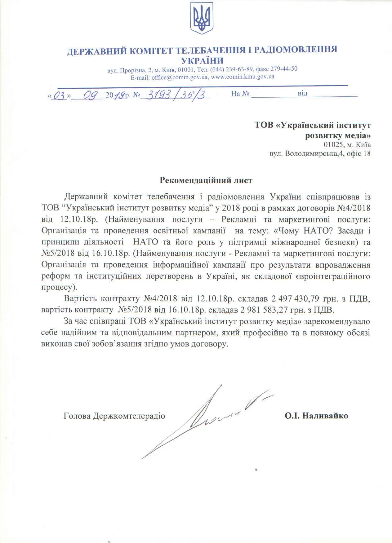 Нас рекомендують View fullsize ДЕРЖАВНИЙ КОМІТЕТ ТЕЛЕБАЧЕННЯ І РАДІОМОВЛЕННЯ УКРАЇНИ Learn more EASTERN PARTNERSHIP CIVIL SOCIETY FACILITY Дивитись ДЕРЖАВНа СудоваАдміністрація України Дивитись Укргідроенерго Дивитись ФОНД ГАРАНТУВАННЯ ВКЛАДІВ ФІЗИЧНИХ ОСІБ Дивитись